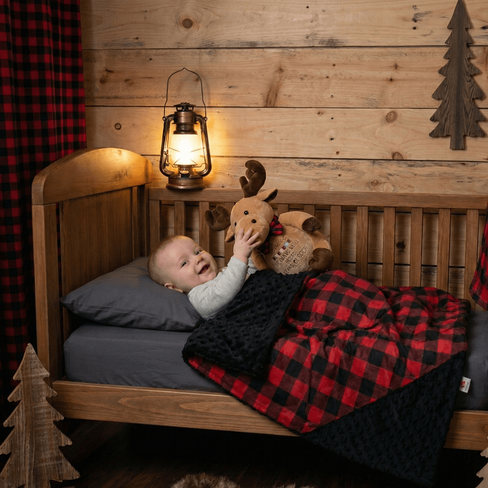Personalized Moose Teddy & Buffalo Plaid Baby Blanket Gift Set – A Cozy and Rustic Keepsake